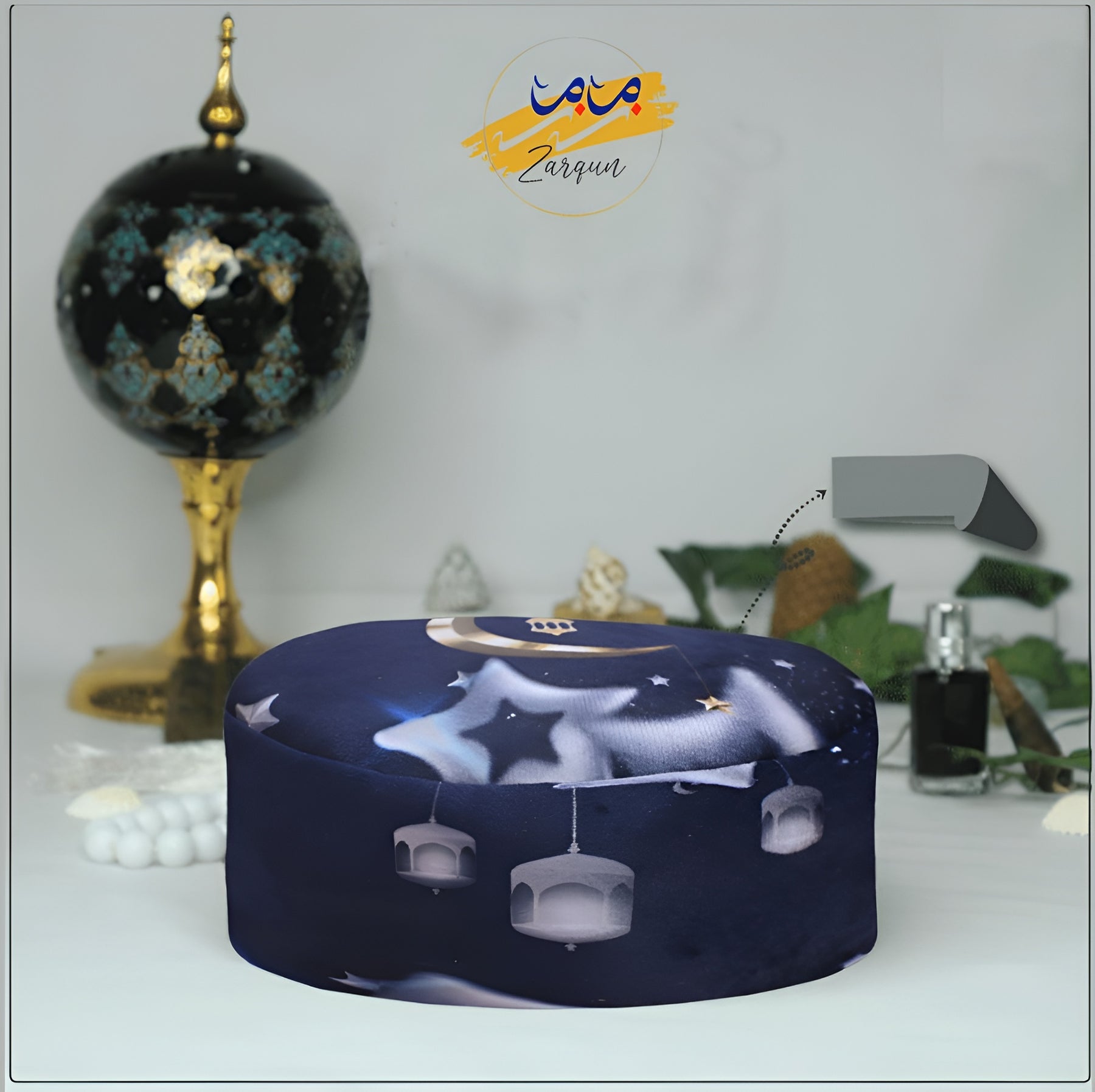 Zamzam Zarqun LLC Stellar Night Prayer Cap topi, a traditional Muslim prayer cap with intricate embroidery and comfortable fit.