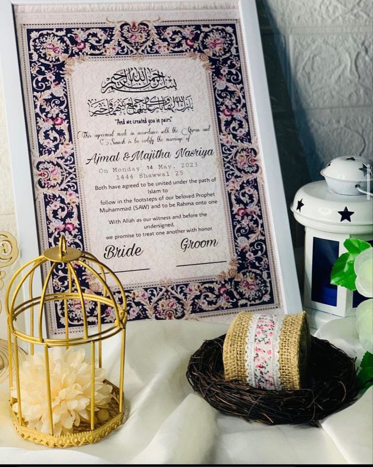 Celebrate your Nikkah with elegance and love through our customized Nikkah frames. Each piece is beautifully designed and personalized with your names, date, and heartfelt details to make your special day truly memorable. Crafted with premium materials and a luxurious finish, it’s the perfect keepsake or gift for newlyweds. Add a touch of beauty and faith to your home with this timeless Islamic décor.